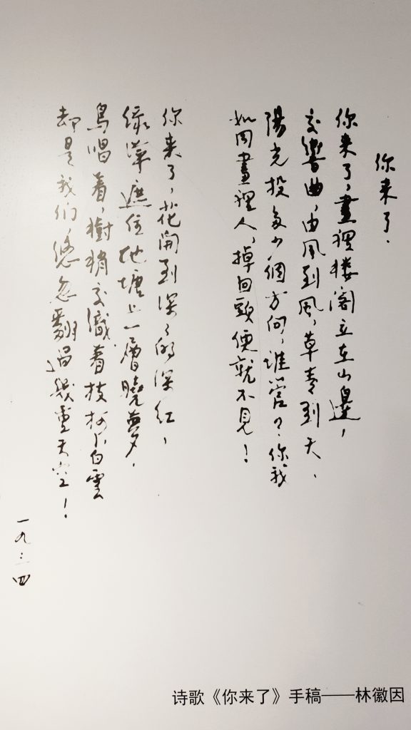 看到林薇因的一首诗 01/20/2020 去了抗战时期梁思成和林薇因在宜宾李庄的居所,看到这首诗《你来了》。 上一篇 这一天 下一篇 拜拜了,蜀南宜宾 发表评论 取消回复您的邮箱地址不会被公开。 必填项已用 * 标注显示名称 * 邮箱 * 网站 在此浏览器中保存我的显示名称、邮箱地址和网站地址,以便下次评论时使用。 评论 Δ